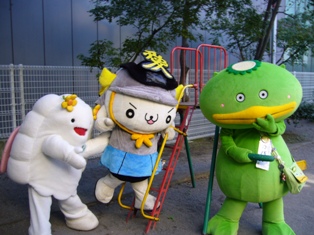 花笠マハエちゃん、ながさき龍馬くん、おしなりくん。