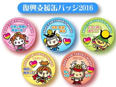 米沢観光物産協会では被災地の復興を応援するため毎年かねたんデザインの復興支援缶バッチを販売してまいりました。